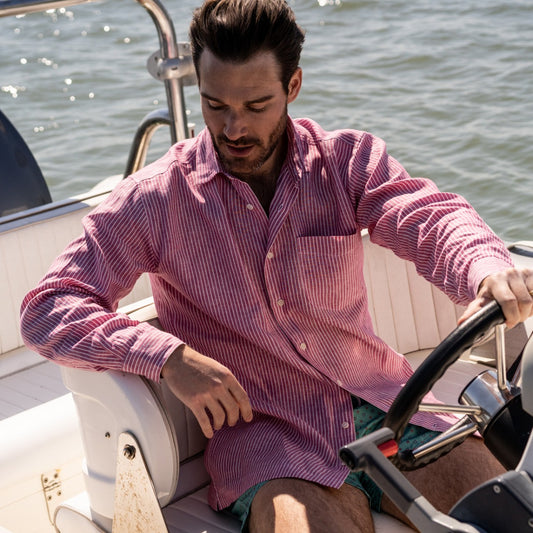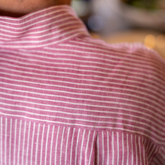 Casual Stripe Linen Shirt in Red and White