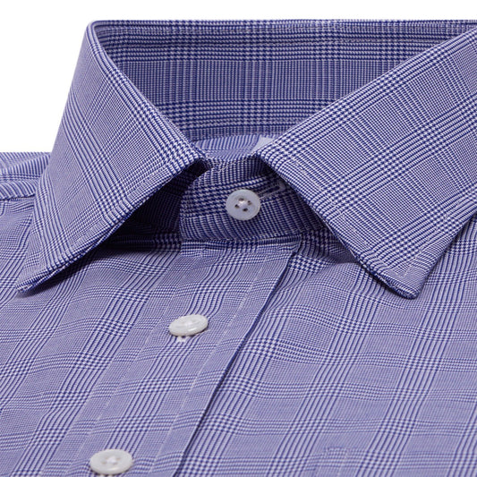 A pretty wear-with-everything fine twill shirt in an appropriate Royal blue Prince of Wales design. The button cuff and fine twill give this shirt great versatility, ensuring it sits as well with a a jacket and tie as it does worn alone. The Royal blue lends the weave great definition.