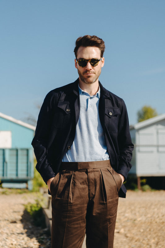 An ideal and luxurious safari shirt to wear and pack with you year-round. It even makes for a great alternative to an unlined navy blazer.