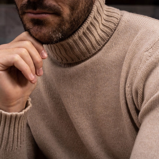 Plain Cashmere Roll Neck Jumper in Linen