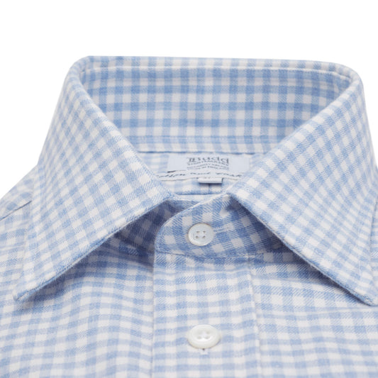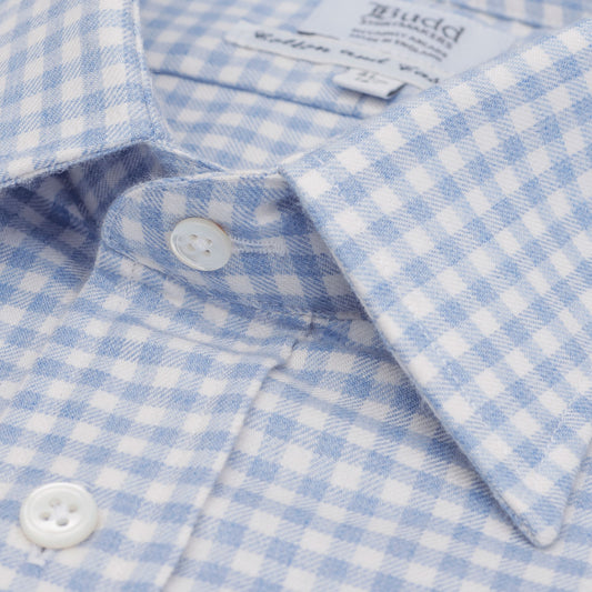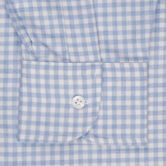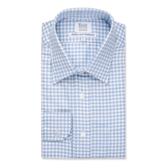 Classic Fit Block Check Cotton and Cashmere Button Cuff Shirt in Sky Blue