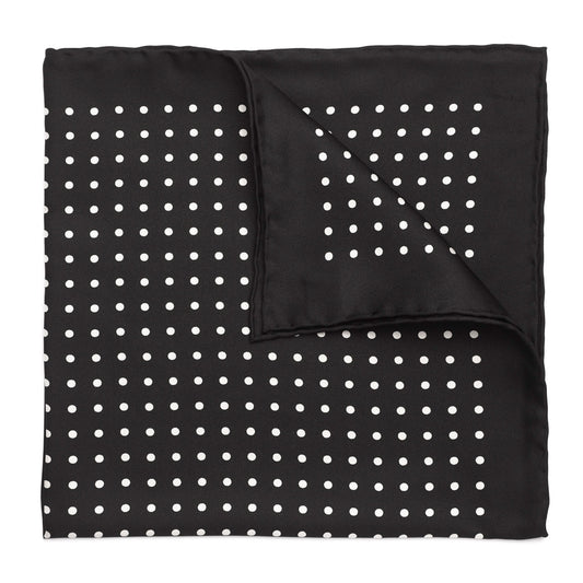 A spotty pocket square never gets tired and never looks stuffy. This black and white silk one works perfectly into a monocrome ensemble.